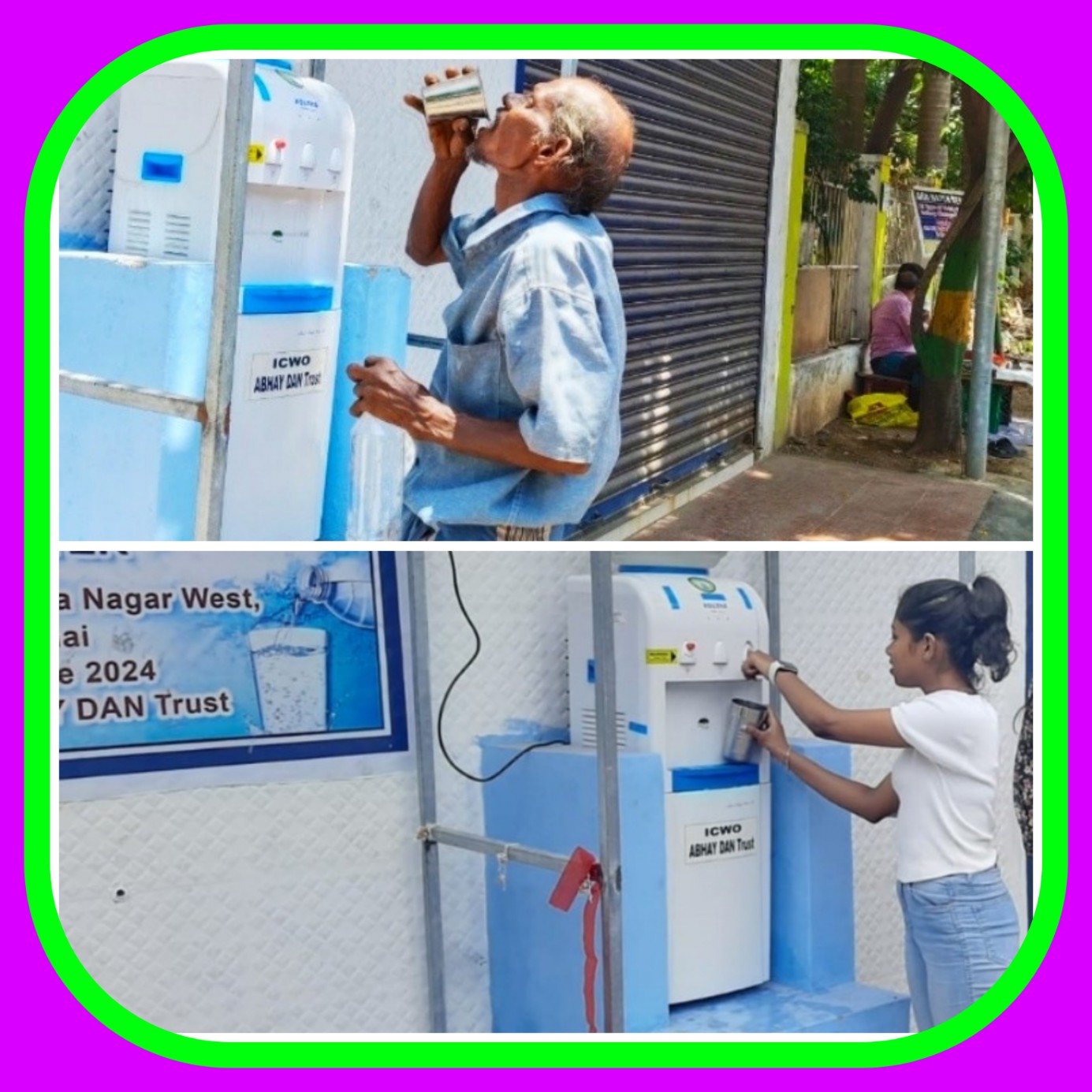 ICWO with the support of Abhay Dan Trust will take the response to purchase water dispenser and deliver to the location of the Residential Association or Business Establishment at Free of cost.