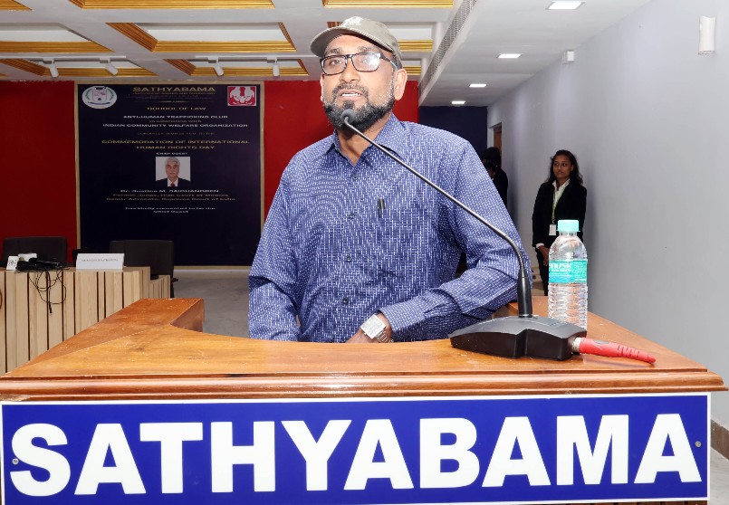சத்யபாமா பல்கலைக்கழகத்தின் சட்டக்கல்லூரி மனித கடத்தல் எதிர்ப்பு சங்கம் மற்றும் இந்திய சமுதாய நல்வாழ்வு நிறுவனம் இணைந்து உலக மனித உரிமைகள் தினவிழா அனுசரிப்பு!
