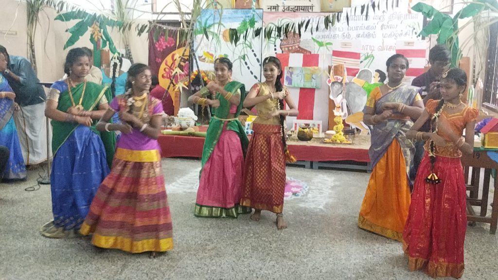 இவ்விழாவில் பள்ளி வளாகம் முழுவதும் தோரணங்கள் கட்டப்பட்டு, மாடுகளுக்கு வர்ணம் பூசப்பட்டு இனிப்பு, கரும்புகளுடன்