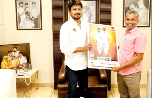 தமிழக இளைஞர் நலன் மற்றும் விளையாட்டு மேம்பாட்டுத்துறை அமைச்சர் உதயநிதி ஸ்டாலின் அவர்களை சேப்பாக்கம் திமுக பகுதி பொருளாளரும், சமூக சேவையாளருமான வி.பி.சிதம்பரம் அவர்கள் மரியாதை நிமித்தமாக சந்தித்து புத்தாண்டு வாழ்த்துக்களை தெரிவித்தார்.