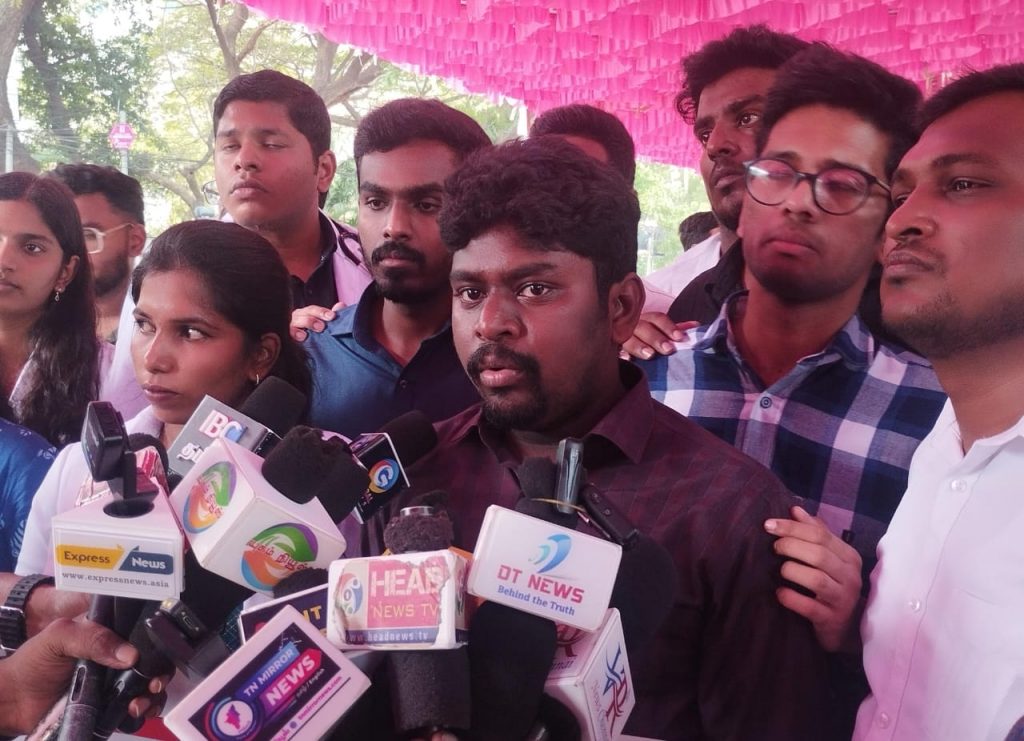 தமிழ்நாடு மருத்துவ மாணவர்கள் சங்கத்தின் வெளிநாட்டுப் பிரிவு மாநிலத் தலைவர் டாக்டர் மு. சரண், மாநில பொதுச் செயலாளர் டாக்டர் எஸ். வசந்த் பிலிப்ஸ் அபிஷேக், உள்ளிட்டோர் கோரிக்கைகளை விளக்கி உரையாற்றினர்.