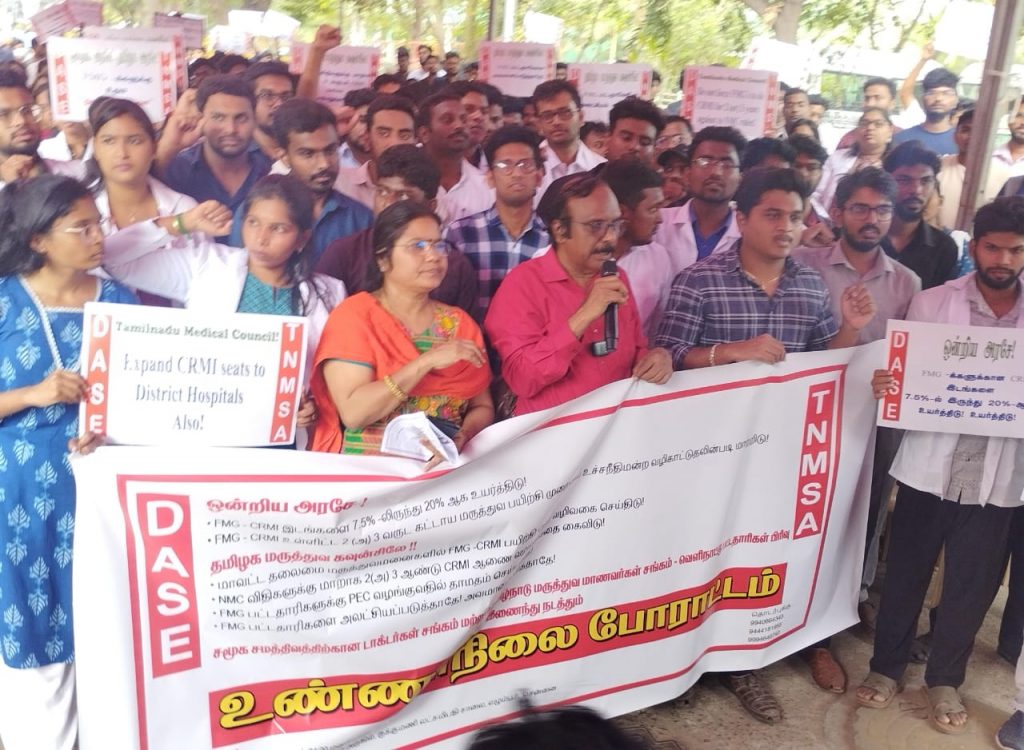 மாவட்ட மருத்துவமனைகளிலும் FMG கள் CRMI பயிற்சி பெற அனுமதித்திட வேண்டும்.