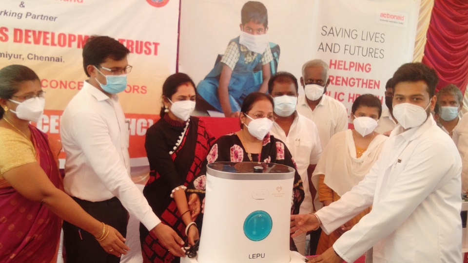 மேலும் இந்த நிகழ்ச்சியில் லோக் சபா பாராளுமன்ற உறுப்பினர் தமிழச்சி தங்க பாண்டியன், சோழிங்க நல்லூர் சட்டமன்ற உறுப்பினர் அரவிந்த்ரமேஷ், தமிழ்நாடு குடிசை மாற்று வாரிய நிர்வாக இயக்குநர் கோவிந்த ராவ் ஐ.ஏ.எஸ் ஆகியோர் முன்னிலையில் 10 ஆக்சிஜன் செறிவூட்டிகள் வழங்கப்பட்டது. இதற்கான ஏற்பாடுகளை ஆக்சன் எய்டு அசோசியேசன் இணை இயக்குநர் எஸ்தர் மரிய செல்வம் அவர்கள் சிறப்பாக செய்திருந்தார்.