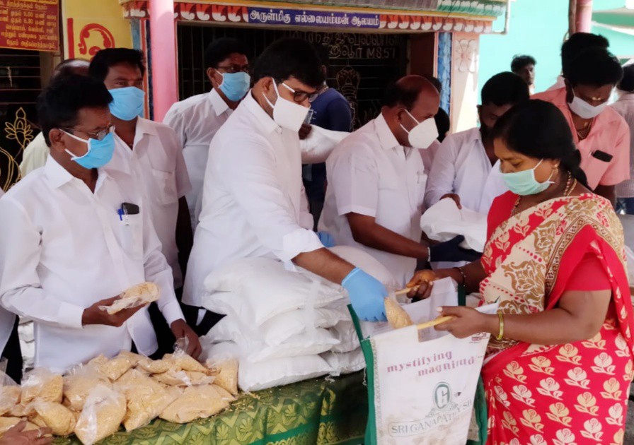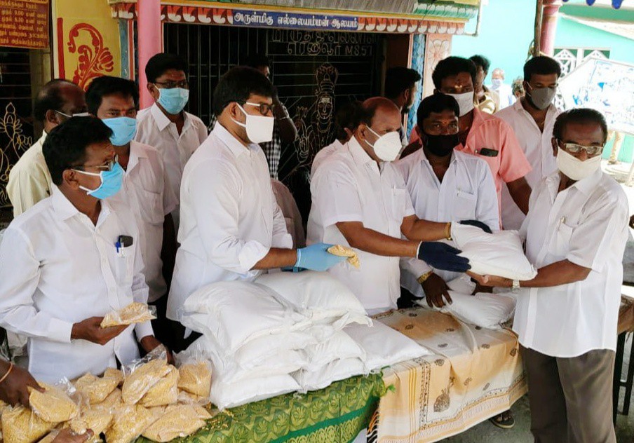 கொரோனா பெரும் தொற்றால் 144 ஊரடங்கு பொது முடக்கத்தால் ஏழை, எளிய மற்றும் பலதரப்பட்ட மக்கள் பெரும் பாதிப்பு குள்ளாகி வாழ்வாதாரமின்றியும், பொருளாதார நெருக்கடியிலும் தவித்து வருகின்றனர். இந்த இக்கட்டான சூழ்நிலையில் அதிமுக முன்னாள் சட்டமன்ற உறுப்பினர் கே.குப்பன் மற்றும் தொழிலதிபர் கே.கார்த்திக் ஆகியோர் சமூக நோக்குடன் சென்னை திருவொற்றியூர் தொகுதிகுட்பட்ட 4வது வட்டத்தில் உள்ள எர்ணாவூர்,பஜனை கோயில் தெரு பகுதிகளில் உள்ள மூத்த குடிமக்கள், வாழ்வாதாரம் இழந்து வசித்து(தவித்து) வரும் சுமார் 300 ஏழை எளிய மக்களுக்கு அரிசி,பருப்பு உள்ளிட்ட அத்தியாவசிய மளிகை பொருட்கள் தொகுப்பை வழங்கினர்.