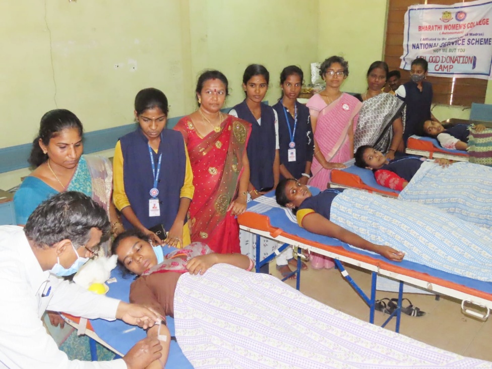 பிராட்வே :உலக சுகாதார தினத்தை முன்னிட்டு பாரதி மகளிர் கல்லூரியின் நாட்டு நலப்பணி திட்டம் மற்றும் இளைஞர் செஞ்சிலுவைச் சங்கமும், சென்னை மாவட்ட செஞ்சிலுவைச் சங்க இரத்த வங்கி சார்பில் இரத்த தான முகாம் கல்லூரி வளாகத்தில் நடைப்பெற்றது.