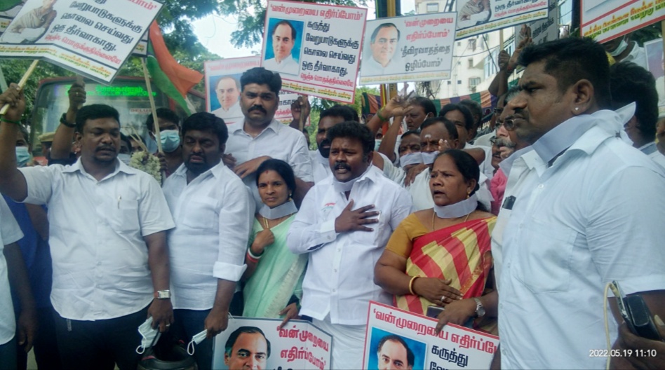 வேப்பேரி: முன்னாள் பாரதப் பிரதமர் ராஜீவ் காந்தி அவர்களின் கொலை வழக்கில் 32 ஆண்டுகளாக தண்டனை பெற்ற பேரறிவாளன் விடுதலைக்கு எதிர்ப்பு தெரிவிக்கும் விதமாக மத்திய சென்னை மேற்கு மாவட்ட காங்கிரஸ் கமிட்டி தலைவர்