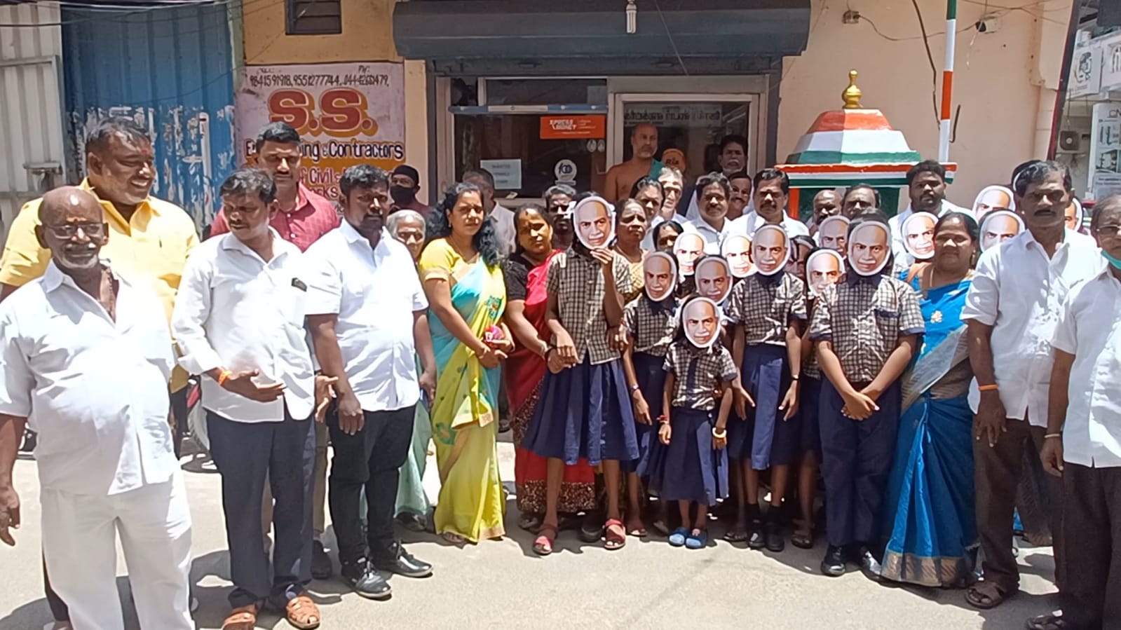 தலைவர் பா.சந்திரசேகர் தலைமையில் கலைப்பிரிவின் மாநில செயலாளர் சூளை ராஜேந்திரன் முன்னிலையில் பள்ளி மாணவர்கள் காமராஜரின் முகமூடி அணிந்து அவரது சிலைக்கு பால் அபிஷேகம் செய்தும் மலர் தூவி மாலை அணிவித்து மரியாதை செலுத்தினர்.