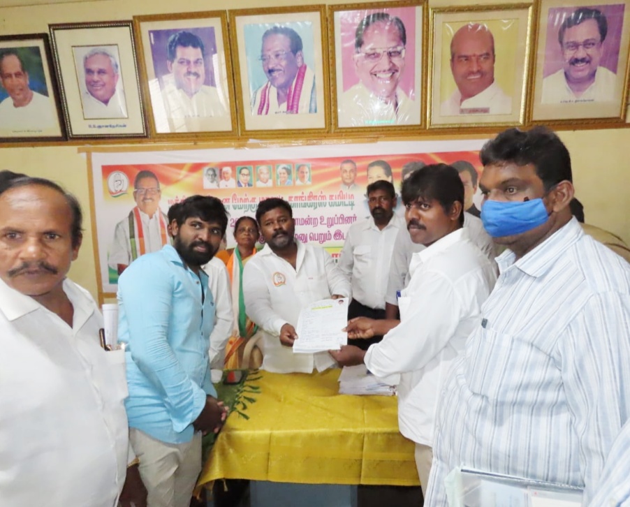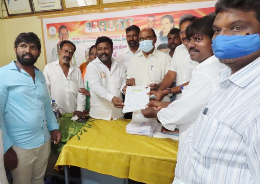 சென்னை மாநகராட்சி மாமன்ற தேர்தலில் வரையறுக்கப்பட்ட பழைய 104 வது வட்டம் மற்றும் புதிய 99-வது வட்ட தலைவர் ஜி.பி.சாம்சன் ராஜ் மத்திய சென்னை மேற்கு மாவட்ட காங்கிரஸ் கமிட்டி தலைவர் எம்.பி. ரஞ்சன் குமார் அவர்களிடம் விருப்ப மனு அளித்தார்.