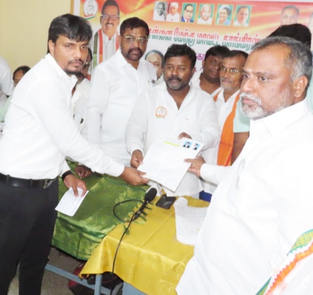காங்கிரஸ் கமிட்டி வழக்கறிஞர் பிரிவு மாநில துணைத் தலைவர் ராஜேஸ் மத்திய சென்னை மேற்கு மாவட்ட காங்கிரஸ் கமிட்டி தலைவர் எம்.பி.ரஞ்சன் குமார் அவர்களிடம் விருப்ப மனு அளித்தார்.