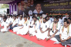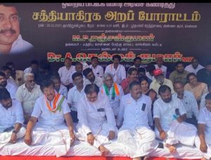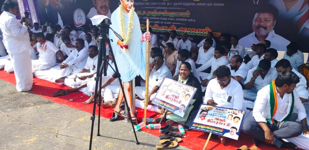 இந்த அறவழிப்போராட்டத்தில் மக்களவை உறுப்பினர்களான செல்லகுமார், திருநாவுக்கரசு, விஜய் வசந்த் ஆகியோர் கலந்துக்கொண்டு கண்டன உரை நிகழ்த்தினர்.
