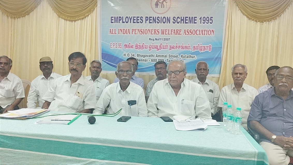 வேப்பேரி:இ.பி.எஸ்-95 (EPS 95) அகில இந்திய ஓய்வூதியர் நலச்சங்கத்தின் 16 ஆம் ஆண்டு பொதுக்குழு கூட்டம் மற்றும் கருத்தரங்கம் சென்னை, வேப்பேரி, பி.கே.என்.பள்ளி வளாக அரங்கத்தில் இ.பி.எஸ்-95 (EPS 95) அகில இந்திய ஓய்வூதியர் நலச்சங்கத்தின் தலைவர் கே. கனகராஜ் அவர்கள் தலைமையில் நடைப்பெற்றது.