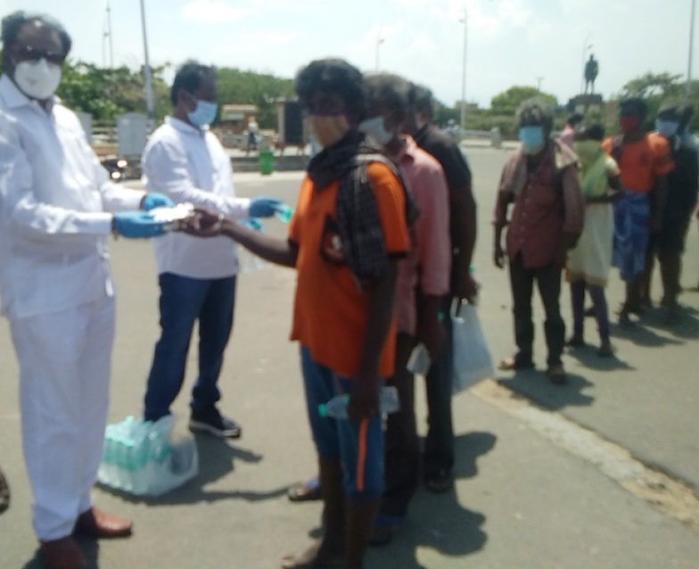 (FAIRA) மதிய உணவு வழங்கும் திட்டத்தின் மூலம்,”19-ஆம் நாளாக மதிய உணவாக அசைவ உணவு மற்றும் தண்ணீர் பாட்டில் 500 சாலையோர ஆதரவற்ற ஏழை எளியோருக்கும் கண்ணகி சிலை அருகில் சமூக இடைவெளியை கடைப்பிடித்து வழங்கப்பட்டது.