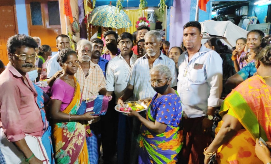 மேலும் இவ்விழாவில் அப்பகுதியில் வசிக்கும் 100 ஏழை, எளிய மற்றும் பொதுமக்களுக்கு பெட்ஷீட், 100 பெண்களுக்கு பெரிய சில்வர் தட்டுடன் மாங்கல்யம் கயிறு, மஞ்சள், குங்குமம், வளையல், ஜாக்கெட் துணி என தாம்பூலம் வழங்கப்பட்டது. அதைத் தொடர்ந்து ஏழைகளுக்கு அறுசுவை உணவு வழங்கப்பட்டது.