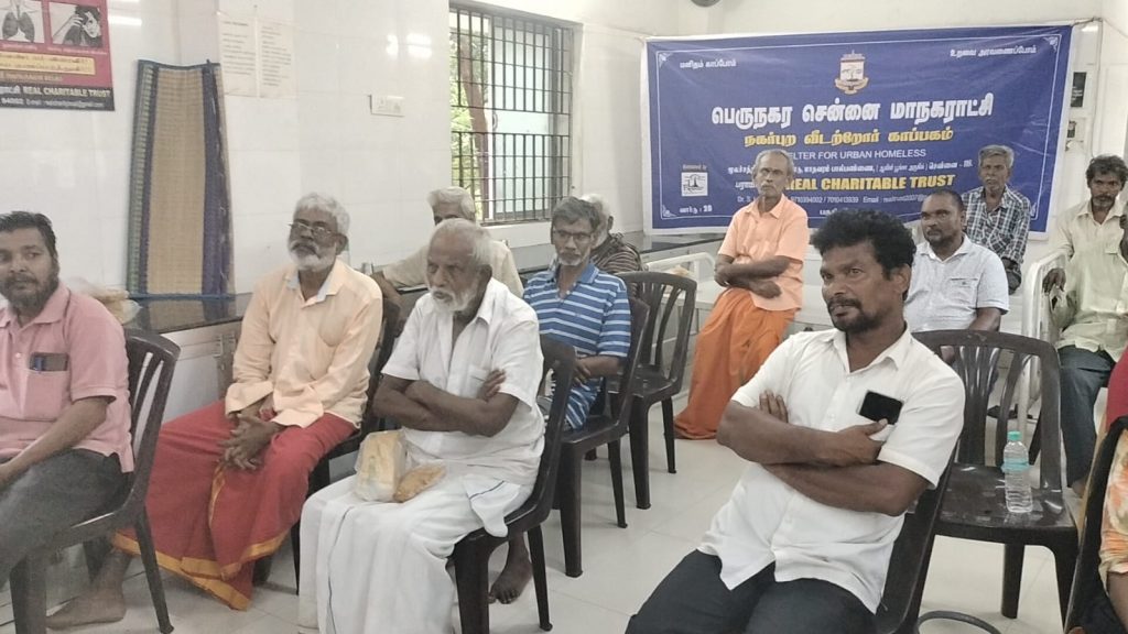 மாதவரம்: ரியல் சாரிட்டபிள் டிரஸ்ட் பெருநகர சென்னை மாநகராட்சியின் வழிகாட்டுதலின் பேரில் மண்டலம்- 4 வார்டு 27 இல் நகர்புற வீடற்றோர் காப்பகத்தை நடத்தி வருகிறது.