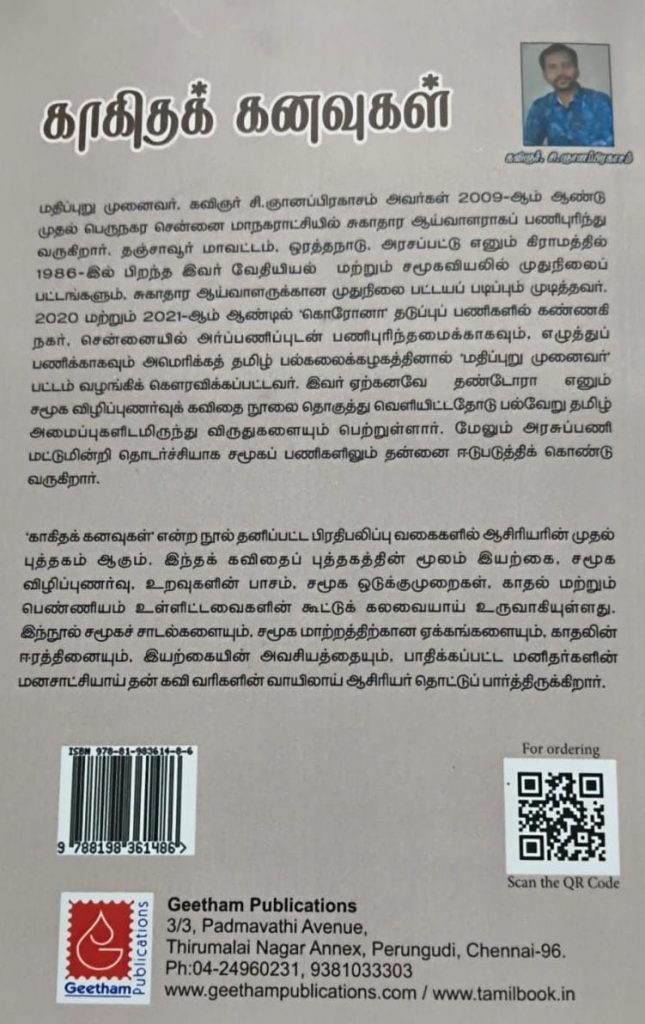 மதிப்புறு முனைவர் கவிஞர் சி. ஞானப்பிரகாசம் ,(சுகாதார ஆய்வாளர், பெருநகர சென்னை மாநகராட்சி) அவர்களின் காகிதக்கனவுகள் எனும் கவிதை நூல் கடந்த ஜனவரி 2025 ல் சென்னை புத்தகக் கண்காட்சியில் வெளியிடப்பட்டது.