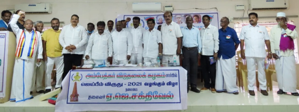 சென்னை: அம்பேத்கர் விடுதலைக் கழகம் சார்பில் 2021ஆம் ஆண்டிற்கான ஜெய் பீம் விருது வழங்கும் விழா சென்னை,நிருபர்கள் மன்றத்தில் நடைபெற்றது.