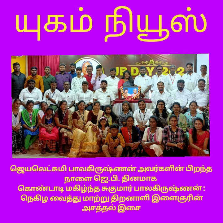 சென்னை : மறைந்த ஜெயலெட்சுமி பாலகிருஷ்ணன் அம்மையாரின் 64-வது பிறந்த நாளை நினைவு கூறும் விதமாகவும் ,அவரின் நினைவுகளை போற்றும் விதமாகவும் ஜெயலெட்சுமி பாலகிருஷ்ணன் அறக்கட்டளை சார்பில் ஜெயலெட்சுமி பாலகிருஷ்ணன் தினம் (JB DAY) கொண்டாட்டம் நிகழ்வு ஈ.சி.ஆர், தனியார் விடுதியில் ஜெயலெட்சுமி பாலகிருஷ்ணன் குழுமத்தின் நிறுவனத்தலைவர் சுகுமார் பாலகிருஷ்ணன் அவர்கள் தலைமையில் நடைப்பெற்றது.