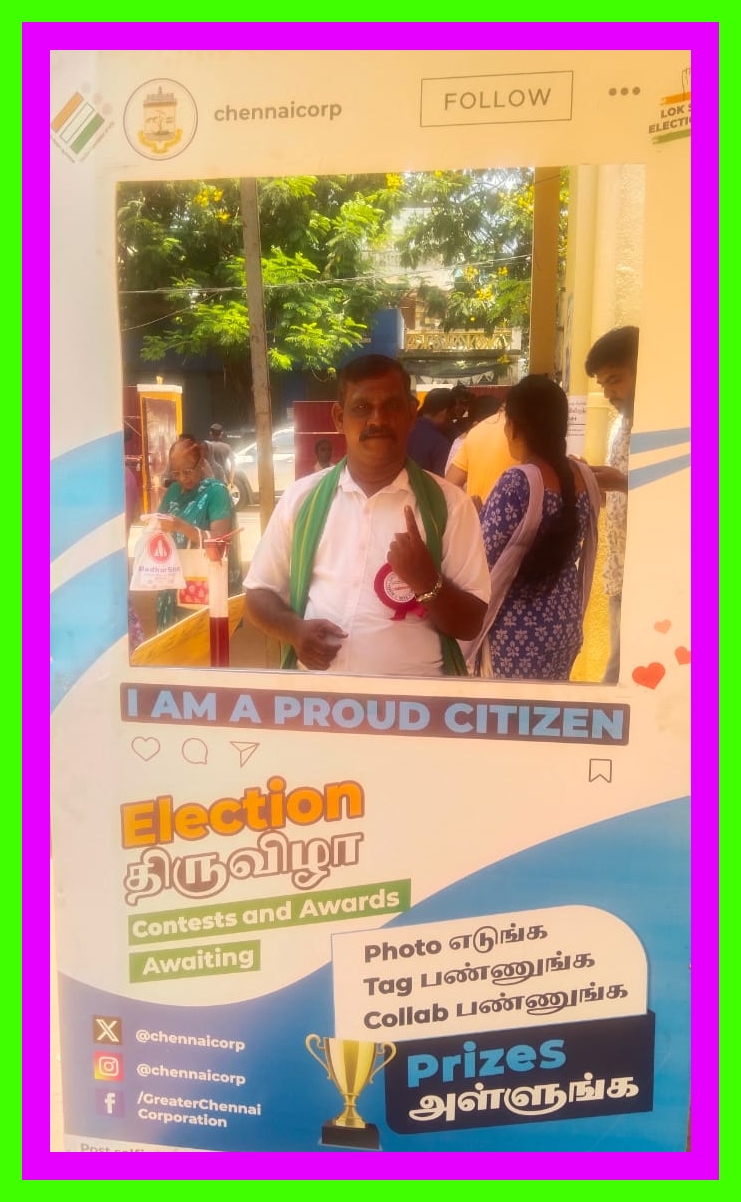 சென்னை: தமிழ் தேசிய அரசியல் கூட்டமைப்பின் மாநில ஓருங்கிணைப்பாளரும், உலக தமிழினப் பேரியக்கத்தின் தலைவரும், மத்திய சென்னை பாராளுமன்ற தொகுதி வேட்பாளருமான கரு. சந்திரசேகரன் அவர்கள் சென்னை வியாசர்பாடியிலுள்ள அரசு ஆண்கள் மேனிலை பள்ளி வாக்குச்சாவடியில் தனது ஜனநாயக கடமையாற்றும் விதமாக வாக்கு செலுத்தினார்.