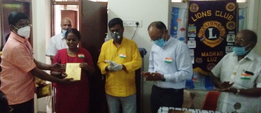 மேலும் மெட்ராஸ் லஸ் அரிமா சங்கம் அவருக்கு பொன்னாடை அணிவித்து கோவிட் வாரியர் என்ற பதகத்தை அளித்து அவரை கௌரவித்தது.
