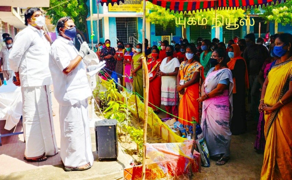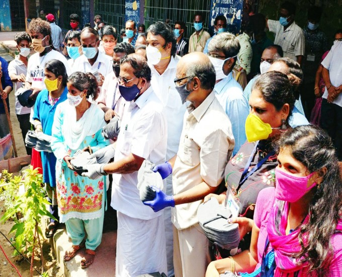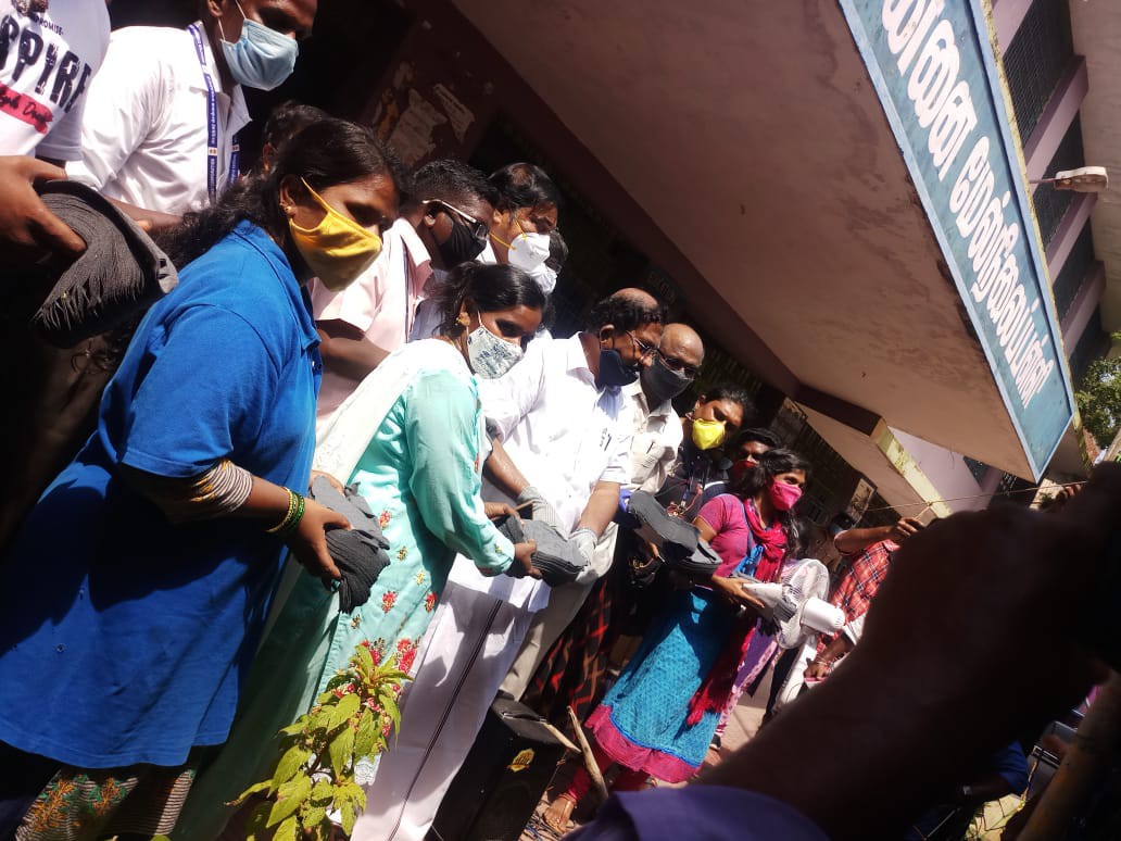 அதைத்தொடர்ந்து திருப்பூரை சேர்ந்த தனியார் நிறுவனம் வழங்கிய 40 ஆயிரம் முகக்கவசங்களை அமைச்சர் பாண்டியராஜன் பொதுமக்களுக்கு வழங்கினார்,