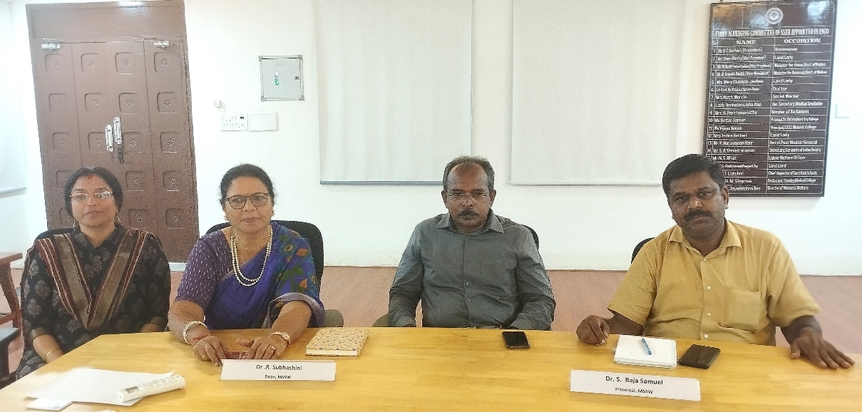 மேலும் செய்தியாளர்கள் சந்திப்பில் கூறியதாவது:சென்னை மாநகரத்தின் இதயப் பகுதியாக இருக்கும் எழும்பூரில் சமூகப்பணிக்காகச் செயல்பட்டு வரும் கல்வி நிறுவனம் சென்னை சமூகப்பணிக் கல்லூரி. விளிம்புநிலை மக்களுக்கும், மாற்றுத்திறனாளிகளுக்கும், திருநங்கைகளுக்கும், திருநம்பிகளுக்குமான சரணாலயமாக நிமிர்ந்து நிற்கிறது. ஆலமர விழுதுகளைப் போல இங்குப் படித்த மாணவர்கள் சூழலியல் சார்ந்த சமூகத் தொழில் முனைவோராக, கைவிடப்பட்ட மற்றும் ஆதரவற்ற மனிதர்களுக்கான இல்லங்களை நடத்தும் மனிதநேயமிக்கவராக, அலைபேசி வழியாகவும் மனநல ஆலோசனை வழங்கும் ஆலோசகராக, இந்திய ஆட்சிப் பணியாளராக, மனிதவள மேலாண்மைத் துறை வித்தகராக, திரை நட்சத்திரங்களாக என்று பரிணாம வளர்ச்சி பெற்றுக் கல்லூரியின் பெருமையை உணர்த்தி வருகின்றனர்.