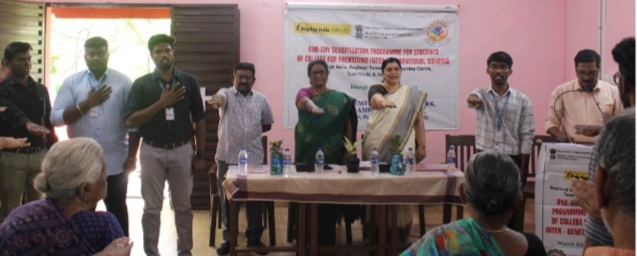 Students took the pledge on Elderly Care during Inter-Generational Bonding Program organised by HelpAge India at Department of Social Work, The American College, Madurai on 3rd March 2023