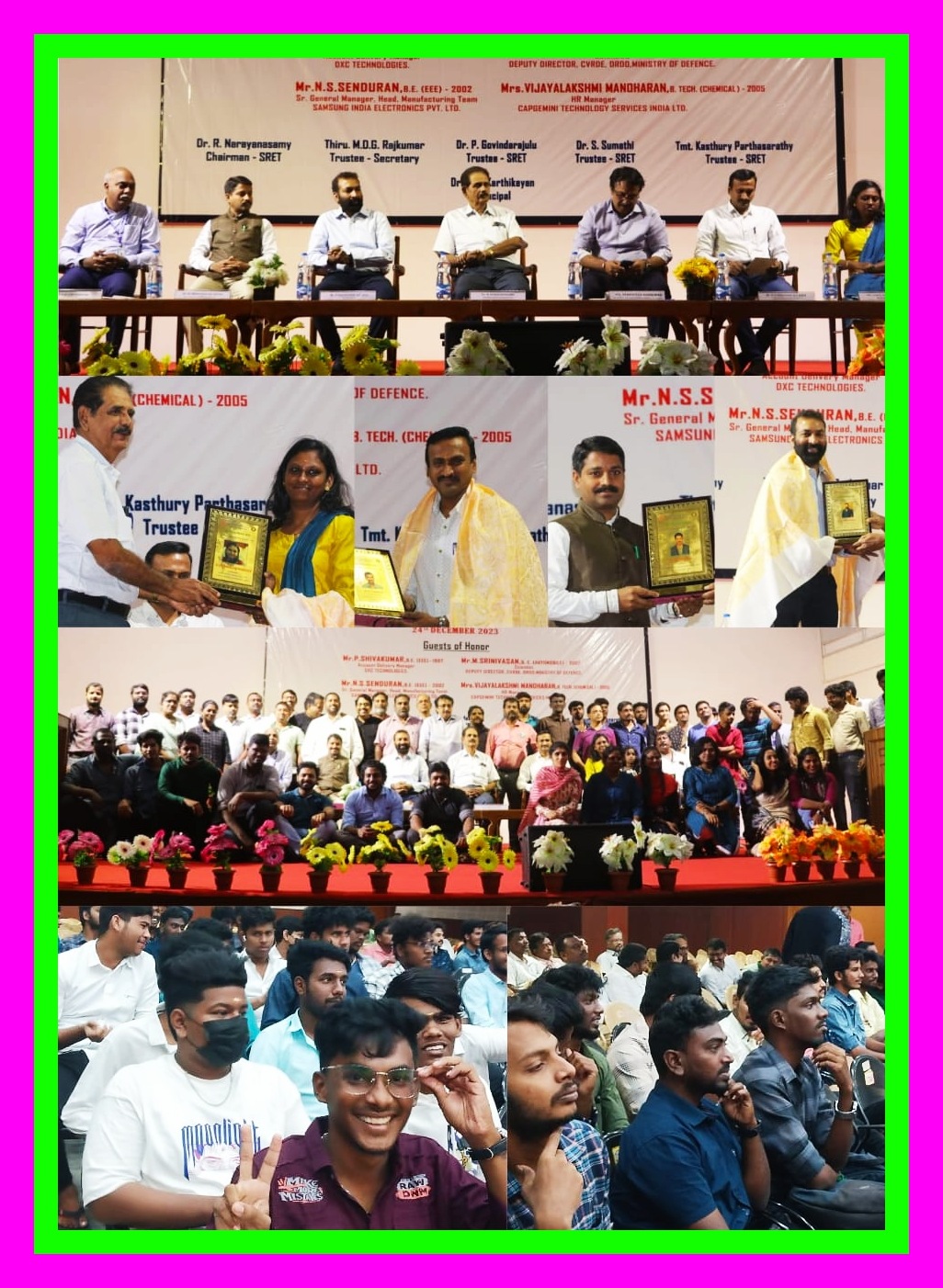 பி. சிவகுமார் B. E. (EEE) 1997 கணக்கு டெலிவரி மேலாளர் DXC டெக்னாலஜிஸ், எம். ஸ்ரீனிவாசன் B. E. (ஆட்டோமொபைல்) 2007 விஞ்ஞானி துணை இயக்குனர், CVRDE, DRDO பாதுகாப்பு அமைச்சகம், என். எஸ். செந்தூரன் பி. இ. (EEE) 2002 சீனியர் ஜெனரல் மேலாளர் மற்றும் தலைமை உற்பத்திக் குழு சாம்சங் இந்தியா எலக்ட்ரானிக்ஸ் பிரைவேட். லிமிடெட் மற்றும் விஜயலட்சுமி. எம் பி.டெக். (வேதியியல்) 2005 மனிதவள மேலாளர் கேப்ஜெமினி டெக்னாலஜி சர்வீசஸ் இந்தியா லிமிடெட். ஆகியோருக்கு பரிசுகளை வழங்கி கௌரவித்தார்.