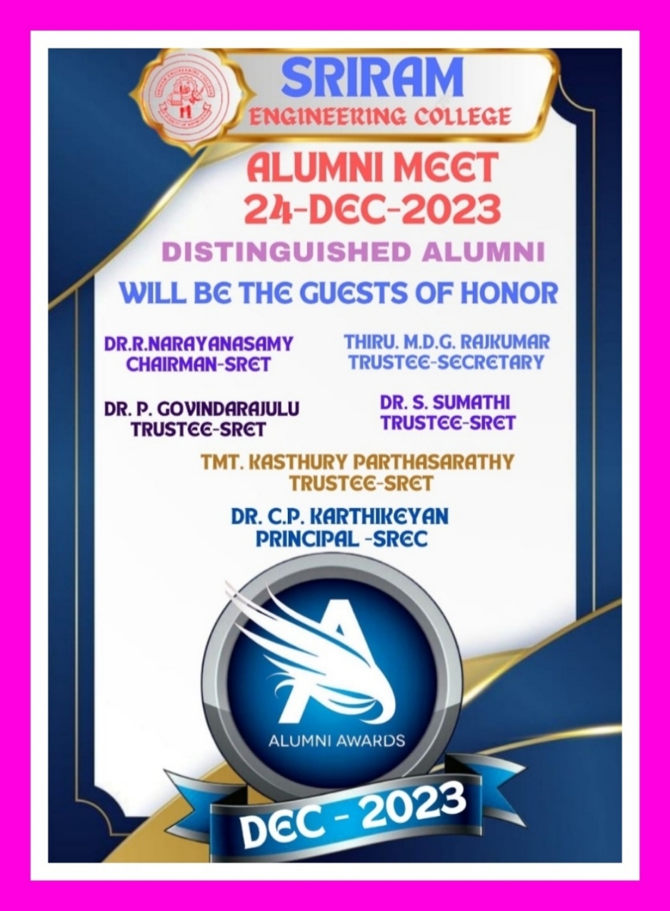 PERUMALPATTU SRIRAM ENGINEERING COLLEGE ALUMNI MEET AND ALUMNI AWARDS 0n 24th december, 2023 Post navigation மக்கள் உரிமை நுகர்வோர் பாதுகாப்பு மையம் சார்பில் மக்கள் விழிப்புணர்வு மாநாடு மற்றும் தகவல் பெறும் உரிமை சட்ட விழிப்புணர்வு கருத்தரங்கம் நிகழ்வு! வடசென்னை கிழக்கு மாவட்ட திமுக திரு.வி.க நகர் தொகுதி வடக்கு கிழக்கு மாவட்டம் சார்பில் மிக்ஜாம் புயல் வெள்ளத்தால் கடுமையாக பாதிக்கப்பட்டு வாழ்வாதாரம் இழந்த பொதுமக்களுக்கு நிவாரண உதவிகள் வழங்கும் நிகழ்வு!