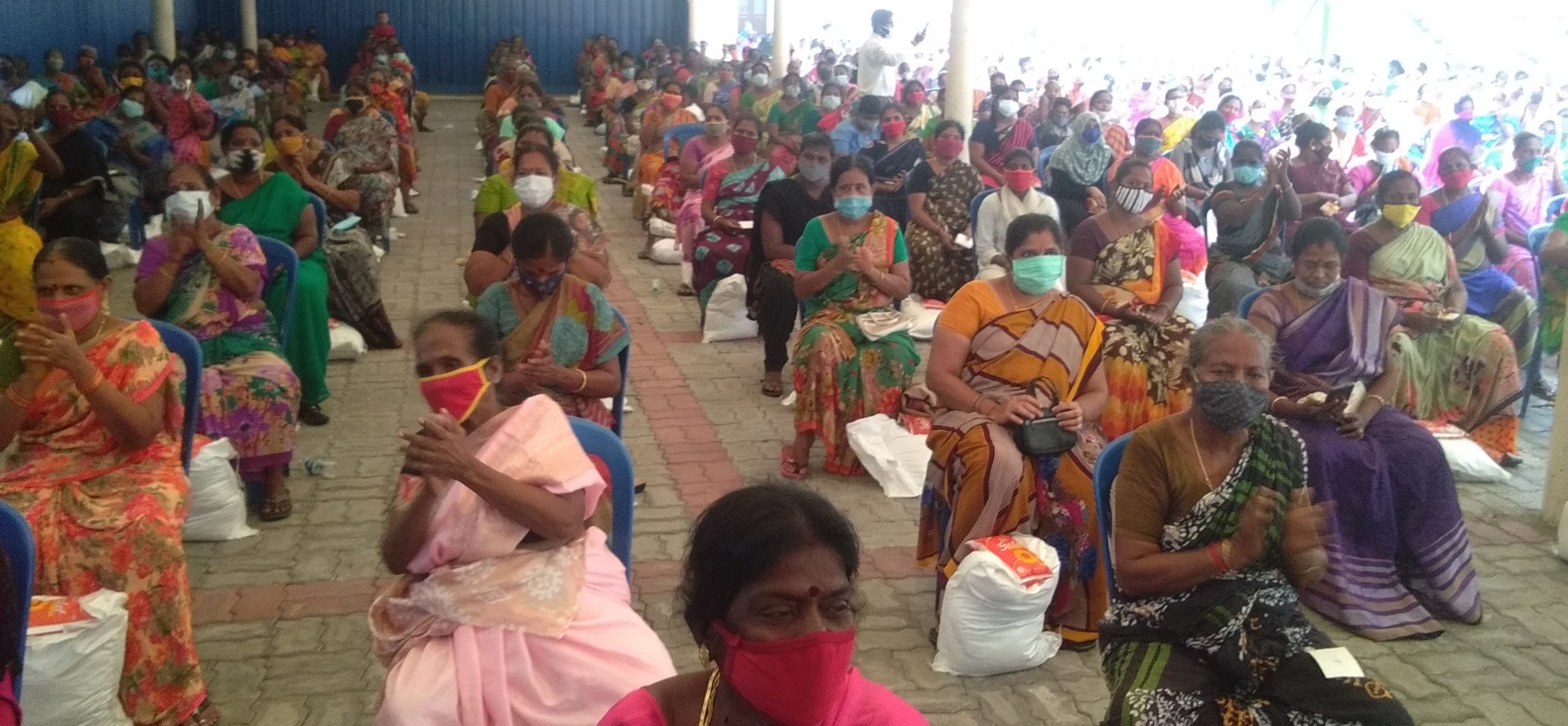 பொது மக்கள் சமூக இடைவெளியை சரியான முறையில் பின்பற்றியும், முக கவசம் அணிந்தும் இந்த நிவாரணப் பொருட்களை பெற்றுக் கொண்டனர்.