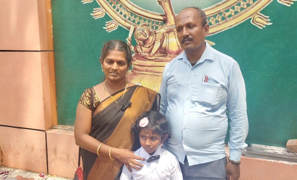 சென்னை திருமங்கலம் பகுதியை சேர்ந்தவர்கள் சக்திவேல் மற்றும் கந்தேஸ்வரி ஆகியோரின் புதல்வி தேஜஸ்வினி என்பவர் ஸ்ரீ பக்தவச்சலம் வித்யாஷ்ராம் பள்ளியில் இரண்டாம் வகுப்பு படித்து வருகிறார்.