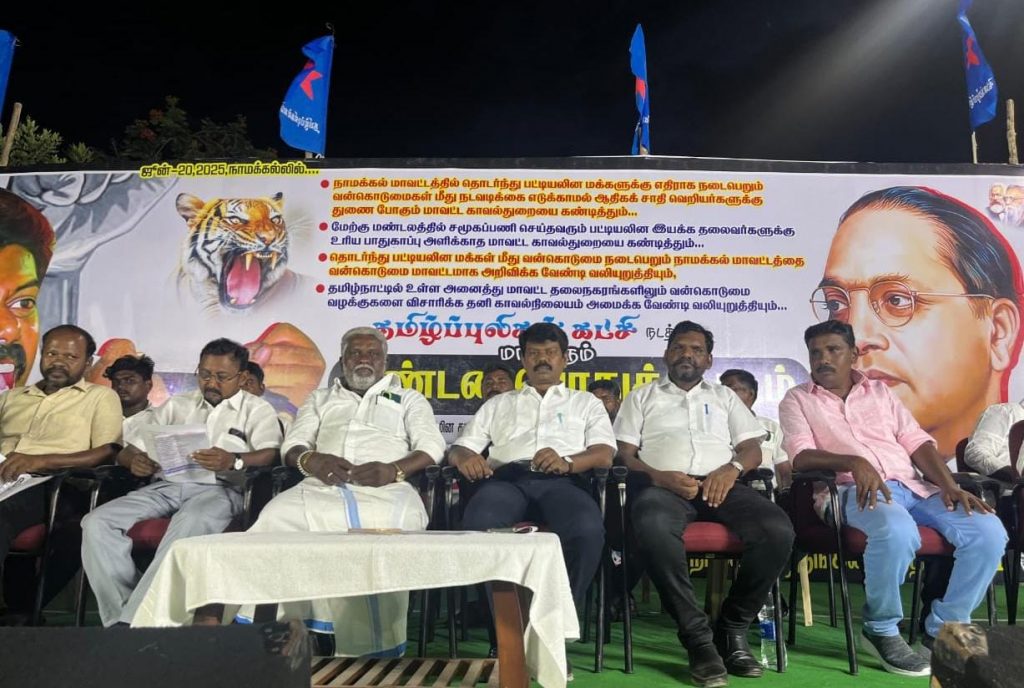 தமிழ்நாடு அரசின் நற்பெயருக்கு களங்கம் விளைவிக்கும் வகையில் செயல்பட்டுவரும் மேற்கு மண்டல நாமக்கல் மாவட்ட காவல்துறை அதிகாரிகளை கண்டித்து மாபெரும் கண்டன பொதுக்கூட்டம் தமிழ்ப்புலிகள் கட்சியின் தலைவர் வழக்கறிஞர் நாகை. திருவள்ளுவன் அவர்கள் தலைமையில் நாமக்கல் நகரில் நடைப்பெற்றது.