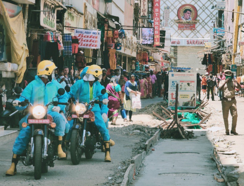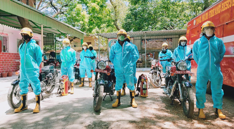 தமிழக அரசு கொரோனா பரவல் தடுப்பு நடவடிக்கைகள் மூலம் நோய் தொற்றை கட்டுப்பாட்டுக்குள் கொண்டுவர தீவிர நடவடிக்கை எடுத்து வருகிறது அதன் ஒரு பகுதியாக சென்னை தியாகராய நகர் தீயணைப்பு மற்றும் மீட்புபணிகள் துறை சார்பில் மாவட்ட அலுவலர் சையத் முகமது ஷா மற்றும் மாவட்ட துணை அலுவலர் பொன் மாரியப்பன் ஆகியோரின் தலைமையில் தி.நகர் ரங்கநாதன் தெருவில் 6 புதிய இருசக்கர வாகனத்தின் மூலம் கடைகளின் இருபுறமும் தீயணைப்பு துறையினர் மூலம் கிருமிநாசினி தெளிக்கபட்டது.