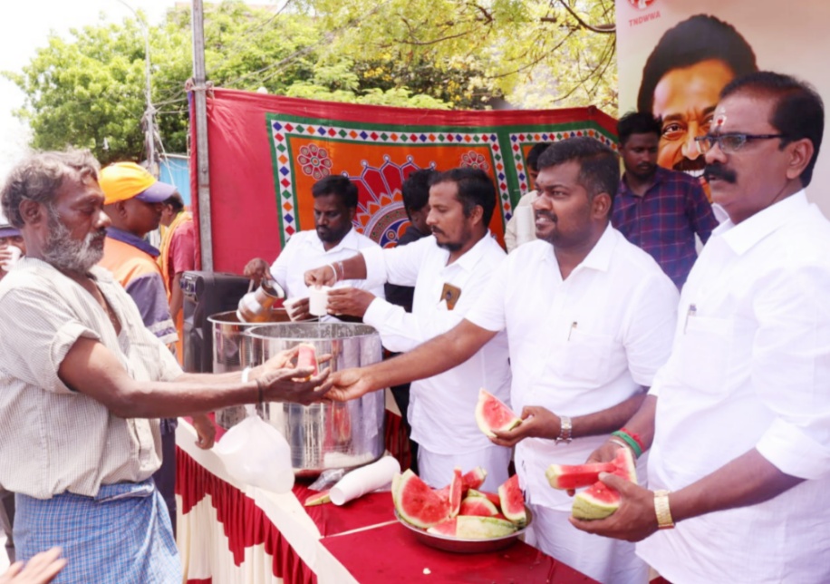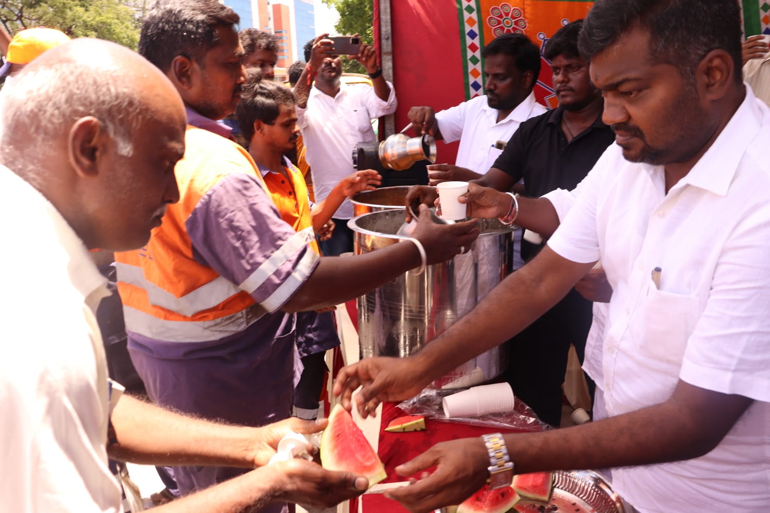 தமிழக வாகன ஓட்டுனர்கள் மற்றும் தொழிலாளர்கள் நல சங்கத்தின் நிறுவனத் தலைவர் சுகுமார் பாலகிருஷ்ணன் அவர்கள் முன்னிலையிலும் நடைபெற்ற இவ்விழாவில் கோடைகால வெப்பத்தை தணிக்கும் வகையில் வெள்ளரிக்காய் மற்றும் தர்பூசணி மோர் மற்றும் பழரசங்கள் உள்ளிட்டவைகள் வாகன ஓட்டிகள் மற்றும் பொதுமக்கள் 1000க்கும் மேற்பட்டோருக்கு வழங்கப்பட்டது. மேலும் இந் நிகழ்வில் இச் சங்கத்தின் துணைத்தலைவர் மாதேஸ்வரன், பொதுச் செயலாளர்.சுரேந்திரன் துணைச் செயலாளர் பச்சையப்பன், திருவள்ளூர் மாவட்ட தலைவர் முருகவேல், பகுதி செயலாளர் முனுசாமி மற்றும் செயற்குழு உறுப்பினர்களான ஸ்ரீநிவாசன். துரைராஜ்,ரவிக்குமார், தினேஷ் பார்த்தசாரதி, ஹரி பாபு,. அஜய்குமார் உள்ளிட்ட உறுப்பினர்கள் கலந்து கொண்டனர்.