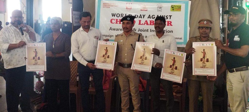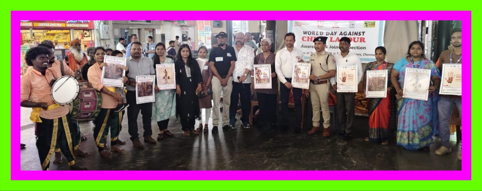 தென்னக ரெயில்வே பாதுகாப்பு படையினர் குழந்தை தொழிலாளர்கள் எதிர்ப்பு பற்றி துண்டு பிரச்சுரம் மூலம் பயணிகள் மற்றும் பொதுமக்களுக்கு விழிப்புணர்வு ஏற்படுத்தினர். மேலும் குழந்தை தொழிலாளர்கள் பற்றிய விழிப்புணர்வு சுவரொட்டி வெளியிடப்பட்டது.