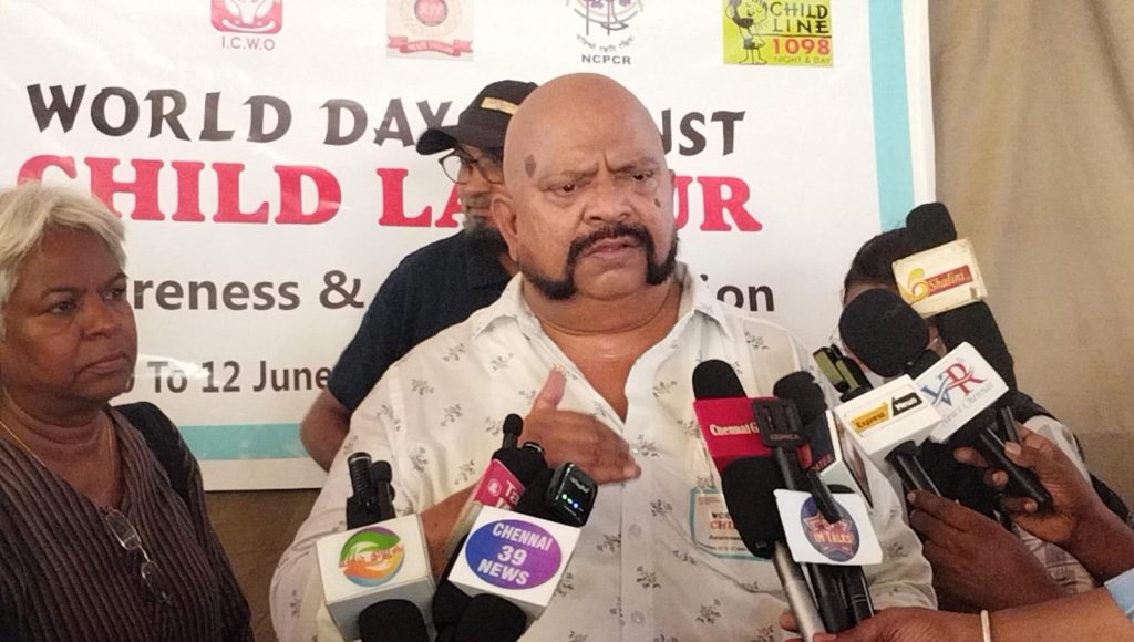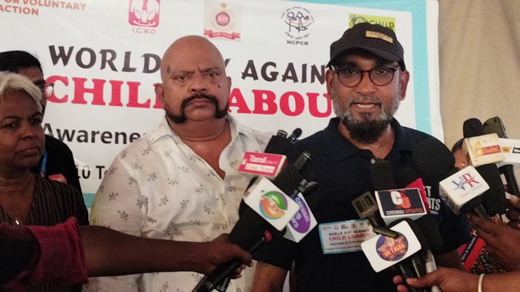 சென்னை: உலக குழந்தை தொழிலாளர்கள் முறை எதிர்ப்பு தினத்தில் இந்திய சமுதாய நலவாழ்வு அமைப்பு (ஐசிடபிள்யூ ஓ)சார்பில் குழந்தைத் தொழிலாளர்கள் எதிர்ப்பு பற்றிய விழிப்புணர்வு மற்றும் உறுதிமொழி ஏற்பு நிகழ்ச்சி சென்னை சென்ட்ரல் எம். ஜி. ஆர். இரயில் நிலையத்தில் ஜ.சி.டபிள்.யூ நிறுவன செயலாளர் ஏ. ஜே.ஹரிஹரன் அவர்கள் தலைமையில் நடைப்பெற்றது.