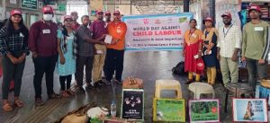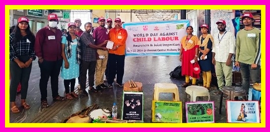 சென்னை:இந்திய சமுதாய சமூக அமைப்பு (ICWO)சார்பில் குழந்தை தொழிலாளர்களுக்கு எதிரான உலக தினத்தில் குழந்தைத் தொழிலாளர்கள் பற்றிய விழிப்புணர்வு மற்றும் உறுதிமொழி ஏற்பு நிகழ்ச்சி சென்னை சென்ட்ரல் இரயில் நிலையத்தில் ஜ.சி.டபிள்.யூ செயலாளர் ஏ. ஜே.ஹரிஹரன் அவர்கள் தலைமையில் நடைப்பெற்றது.